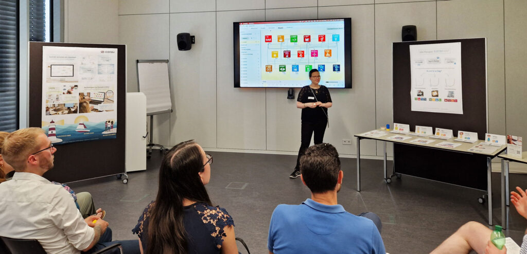 Die Masterstudentin Stephanie Helmeth betrachtete in ihrer Masterarbeit, welche Kompetenzen der Inner Development Goals (IDG) mit dem Planspiel trainiert werden und welchen Beitrag dies zur Kultur der Nachhaltigkeit an der Hochschule München hat. Es wurden vier Sustain2030-Workshops durchgeführt und anschließend die Teilnehmenden zu der Forschungsfrage befragt. Die iCONDU GmbH unterstützte Stephanie Helmeth mit der Bereitstellung einer Sustain2030-Lizenz und einem Train-the-Trainer Seminar. Das Ergebnis zeigt, dass Sustain2030 einen Beitrag zu den Kompetenzen der IDGs leistet und sich das Planspiel als ein Baustein für die Entwicklung einer Kultur der Nachhaltigkeit an der Hochschule München eignet.