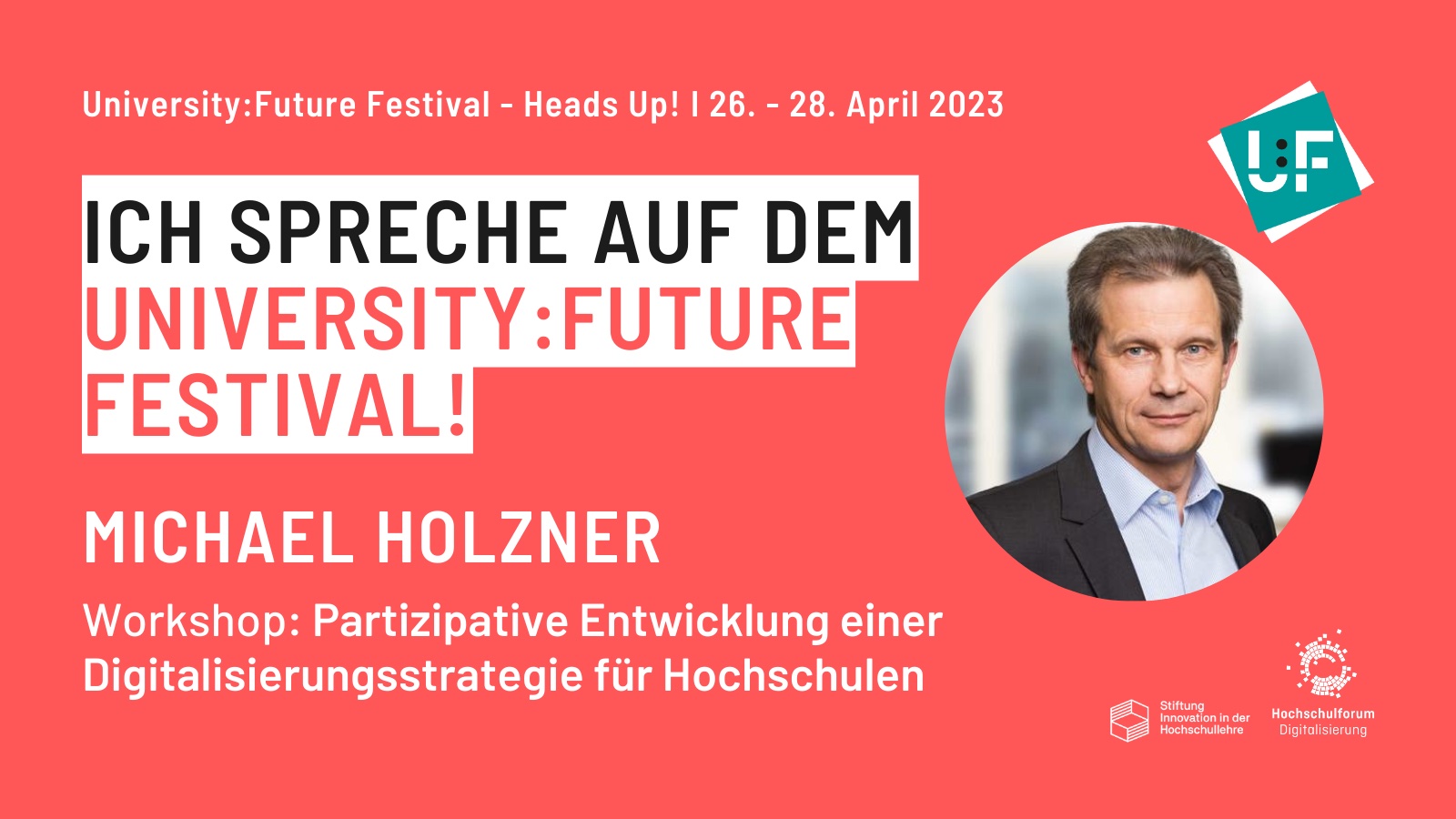 Drei Tage rund um die Zukunft der Hochschulbildung: Unter dem Motto “Heads Up!” fand das University:Future Festival (U:FF) vom 26. bis 28. April 2023 in Präsenz sowie im digitalen Raum statt. Dabei galt: Digital first! Das Festival in seiner ganzen Vielfalt und das Rahmenprogramm waren vollumfänglich nur online zu erleben. Physische Bühnen an verschiedenen Orten Deutschlands ermöglichten parallel dazu die Begegnung und Vernetzung in Präsenz. Das Festival adressierte in Auseinandersetzung mit den Chancen und Herausforderungen der digitalen Transformation ein breites Themenspektrum rund um KI, Architekturen, Technik, Strategieentwicklung, Kompetenzen, Didaktik und vieles mehr.